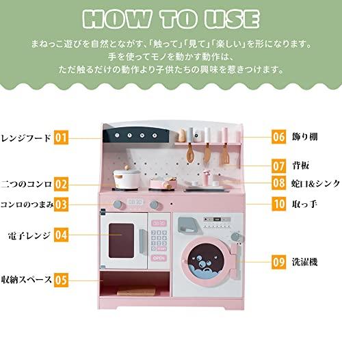 【絶妙な誕生日プレゼント】:精巧な児童キッチン、きれいな料理道具アタッチメント。子供と一緒に遊び、子供に楽しみを与え、いい誕生日プレゼント。 【安全性テストに合格】:EN71などの「玩具の安全性(safety of toys)」テスト結果はPASS!素材から塗料まで安全でお子様に優しくて頼もしい製品です。 【磁石設計の扉】ぱっと扉が閉まったら、指を挟む恐れがあります。ECのおままごとキッチンはお子様の安全を第一位に考えて、ゆっくりと閉まる磁石設計の扉が登場します! 【豊富なキッチンアクセサリー】本物みたいな10点小物付き:フライパン 鍋 調味料 魚 蟹 穴つきフライ返し スプーン ナイフ まな板普通の店が用意しない付属品まで準備しています~。 【簡単組立】ベットフレームには日本語の取扱説明書が付いており。1箱梱包によるコンパクト配送。付属の工具を使えば、事前の準備は必要なく届いてすぐに組み立てられます。あなたはすぐに組み立てを完了してあなたの子供と幸せな時間を過ごすことができます 。