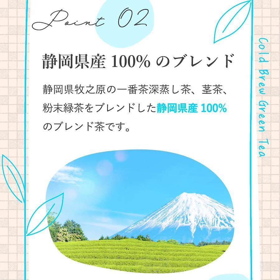 内容量: 5g×50個?形状:テトラ型ティーバッグ(トウモロコシを原料とした自然由来の素材を使用。)?深蒸し煎茶、茎茶、粉末茶の水出し専用のブレンド?深蒸し茶の旨味・甘み・スッキリした後味をお楽しみいただけます?抹茶による鮮やかな緑色に抽出できます?水出しはもちろん、ホットでもお召し上がりいただけます。その際はお好みにご調整ください【免責事項】メーカーによる商品リニューアルに伴いパッケージ(内容量も含む)変更が行われた場合、新パッケージでお届け致します事ご了承願います。