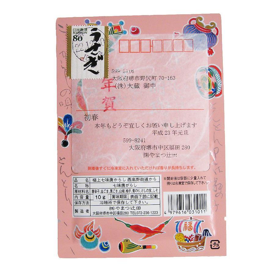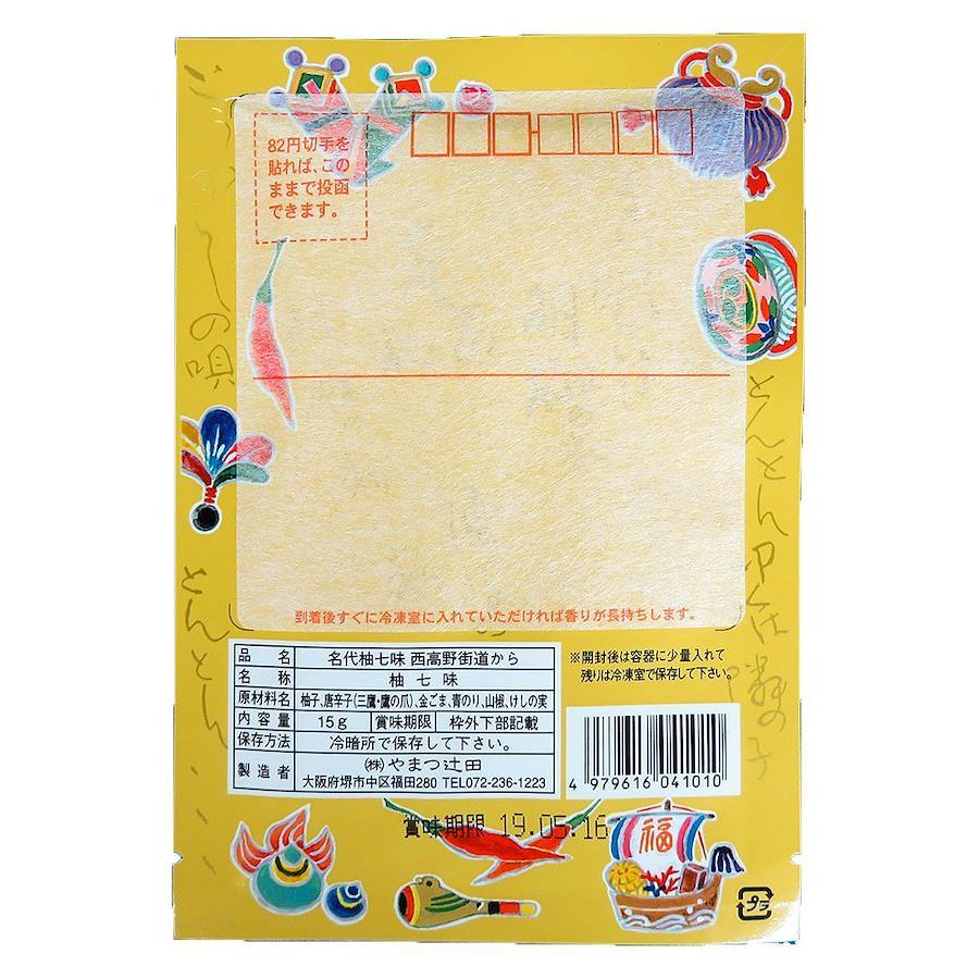 原材料 : 【極上七味】唐辛子、金ごま、黒ごま、山椒、青のり、けしの実、しそ 【名代柚七味】柚、唐辛子、金ごま、青のり、山椒、けしの美内容量 : 各15g賞味期限 : 1年保存方法 : 冷暗所 長期保存の場合は冷凍セット内容 : 極上七味x1 名代柚七味x1製造元 : 株式会社 やまつ辻田運送形態:メール便 5セットまで1メール便(180円)にてお届け可能です。【重要】メーカーによる商品リニューアルに伴いパッケージ(内容量も含む)変更が行われた場合、新パッケージでお届け致します事ご了承願います。