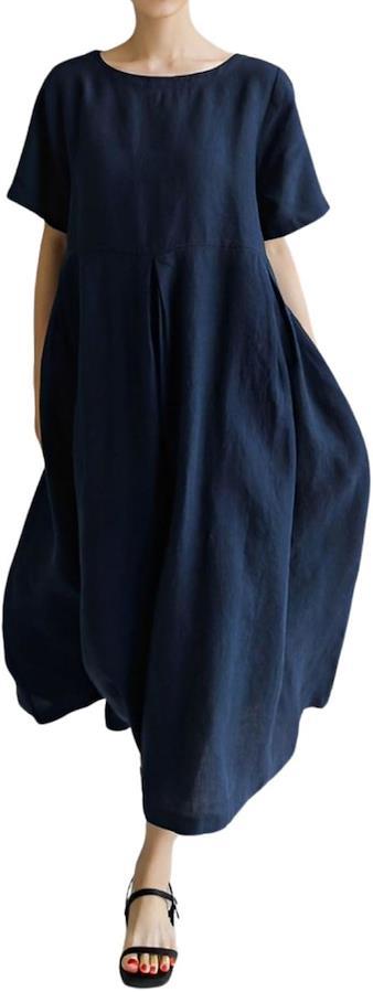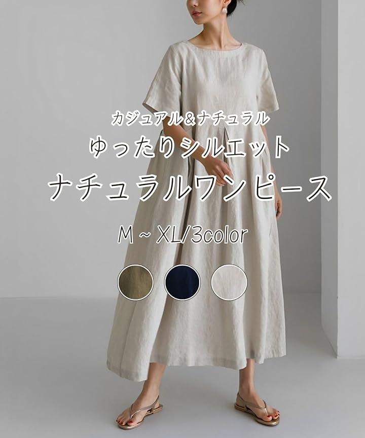 ゆったりとしたシルエットが可愛いナチュラルワンピース 胸下からの切り替えしは大きめタックでふんわりとしたロング丈で体型カバーも叶います 綿麻混合生地なので暑い時期もさらりと涼しく着られます