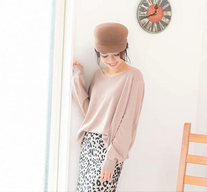 体形カバー力絶大*Vネックと、裾ワイドリブですっきりスタイルアップして見せるふんわり綿ニット。