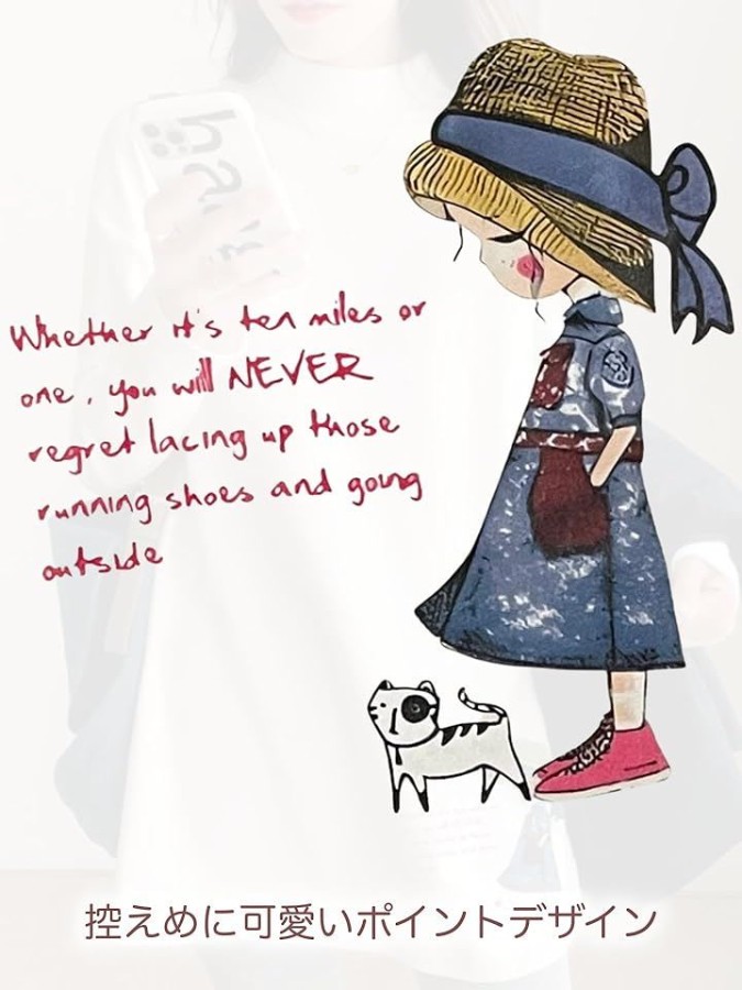 右下には、小さな女の子とネコの 愛らしいプリントをプラス。