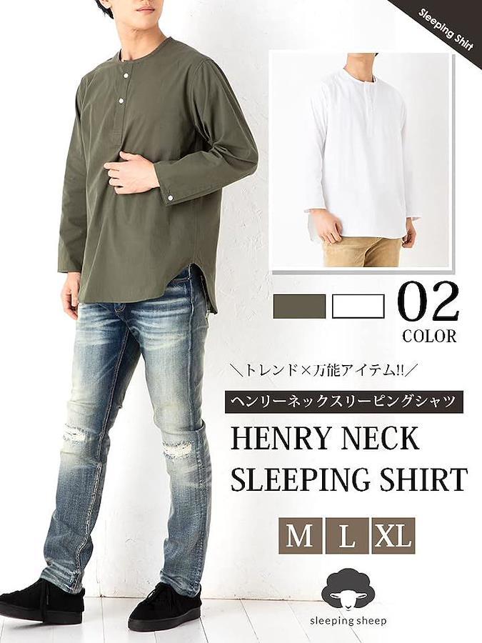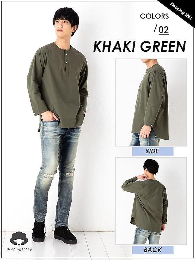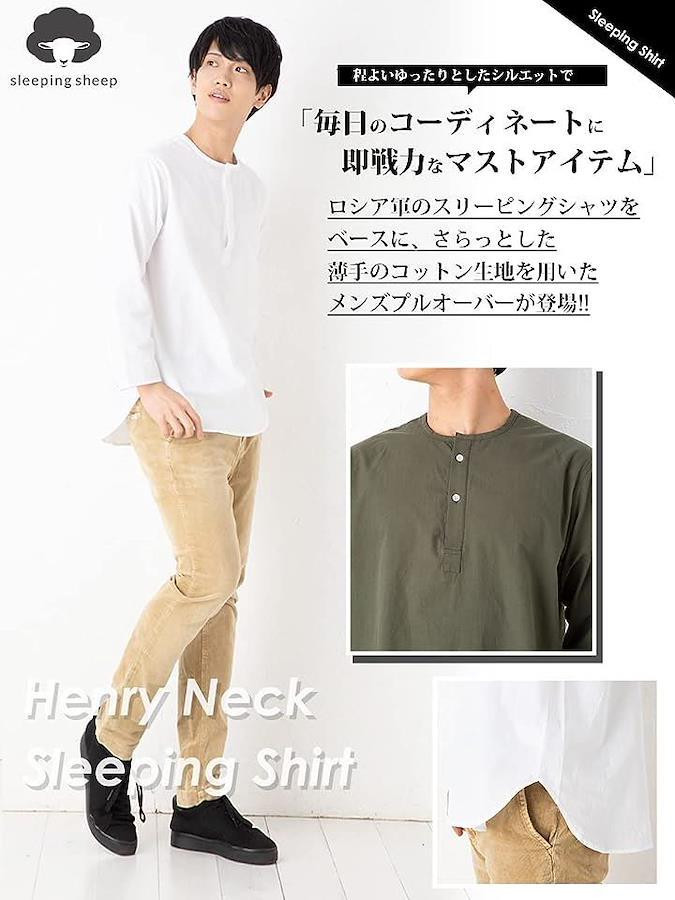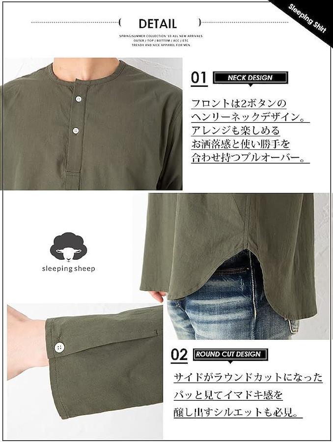 ロシア軍のスリーピングシャツをベースに、フロントは2ボタンのヘンリーネックデザイン。
