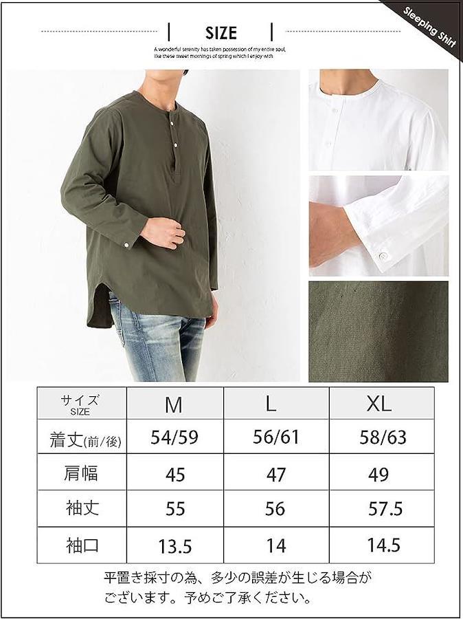 M:着丈(前/後)54/59cm、肩幅45cm、袖丈55cm、袖口13.5cm