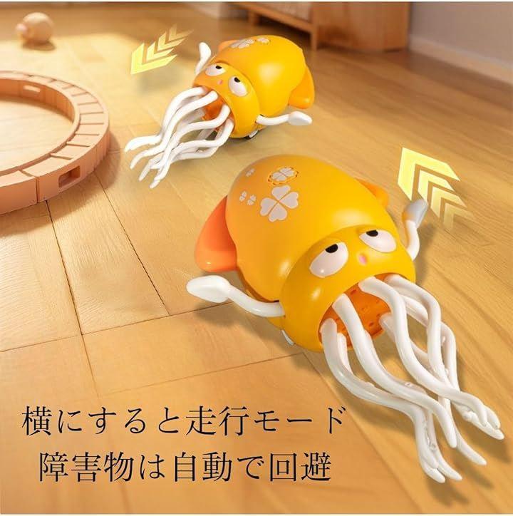 タコ型おもちゃは内蔵センサーで障害物を感知し、自動的に進行方向を変えて逃げるように動きます。