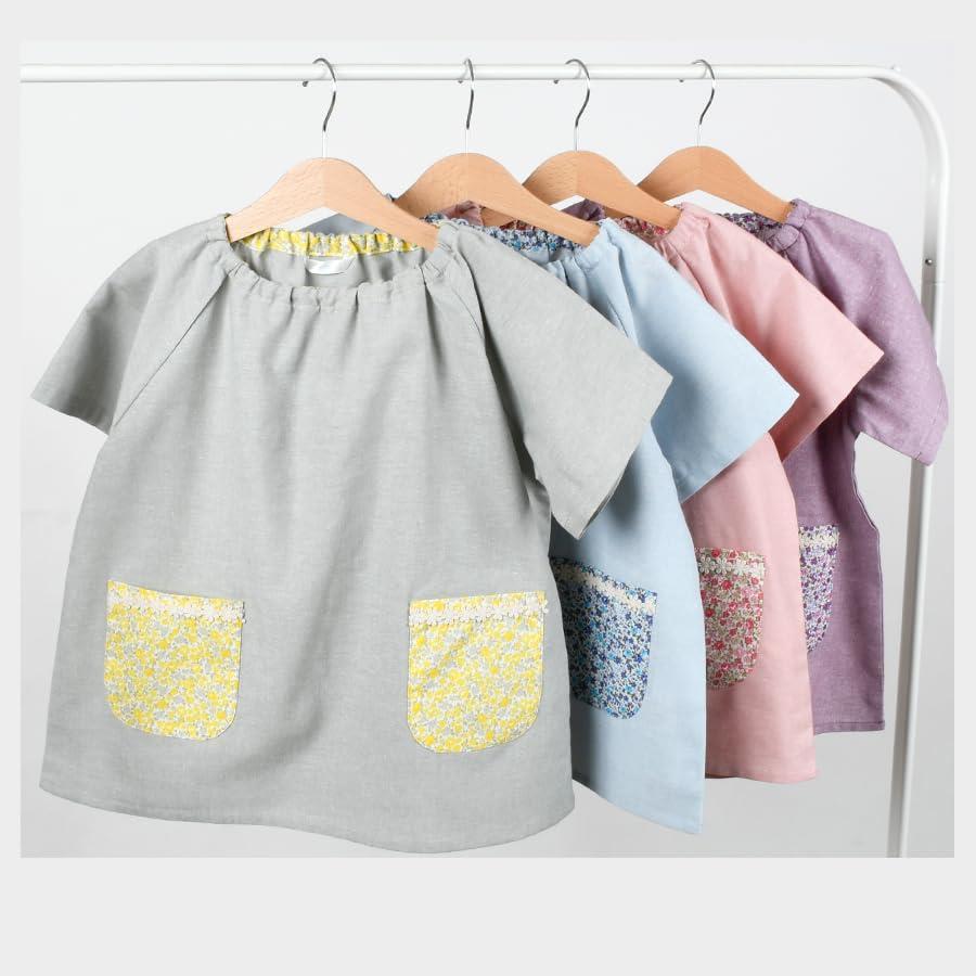 This short sleeve smock has a very cute pastel color and small floral pattern. Just slip it on, so even children can easily put it on and take it off by themselves. Roomy enough to be worn over clothes. Excellent mobility This smock can be worn at any time for moms to help meals, drawing, playing clay... when you don't want to get dirty clothes. ★Please check the size in the [Product Description] below (#lf)(#lf)(#lf)商品購入前に、ストア紹介ページをご確認ください。