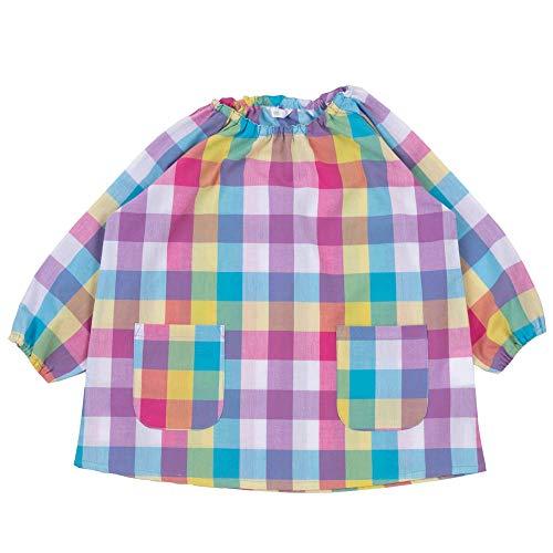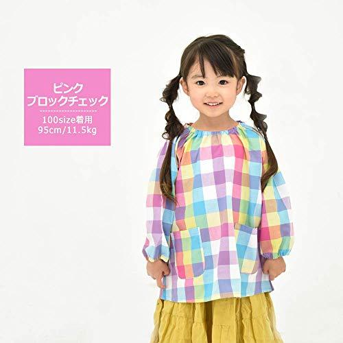 [よつば洋品店オリジナル] 長袖柄スモック 撥水・抗菌・消臭加工 (110/ピンクブロックチェック)【QO-YY380】 プレイウエア 遊び着 子供