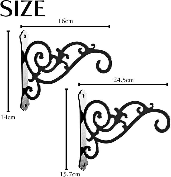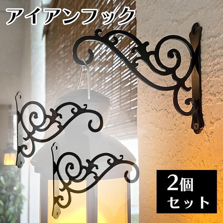 アンティーク調の黒いアイアンハンギングブラケットでおしゃれな空間演出。ハンキングフック2点セットです。