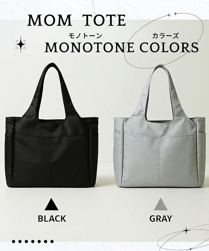 公園やお買い物、保育園の送り迎えなど毎日のシーンで頼れる、軽量で肩掛けしやすいマザーズバッグトートです。