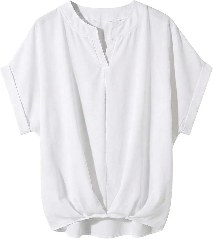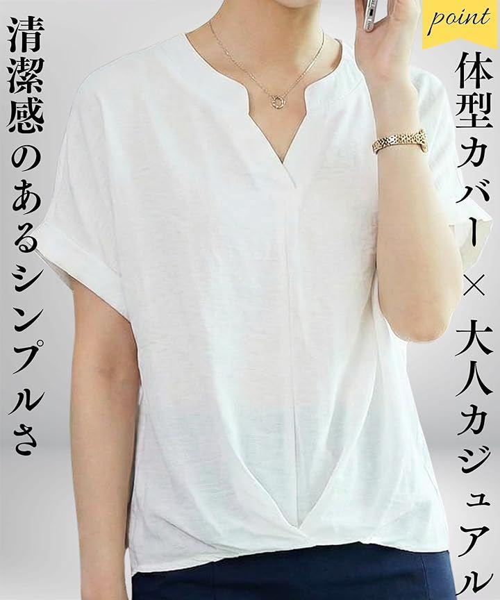 フロントのタックがお腹周りを隠し、自然な体型カバーを叶えるトップスです。
