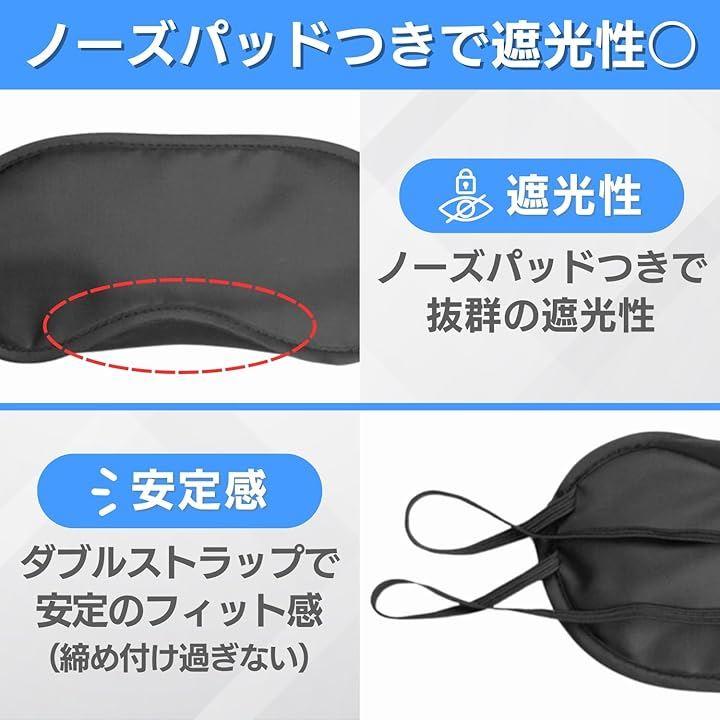 「快適素材」ノーズパッド付きで高い遮光性を確保する形状、クッション性と通気性のあるマスク素材、ダブルストラップによる快適な着用感を実現し、睡眠をサポートします。