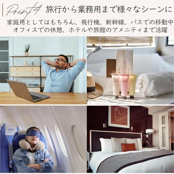 旅行や出張、飛行機や新幹線での移動、外出先や車中での仮眠、オフィスでのお昼寝など、様々なシーンで活躍します。