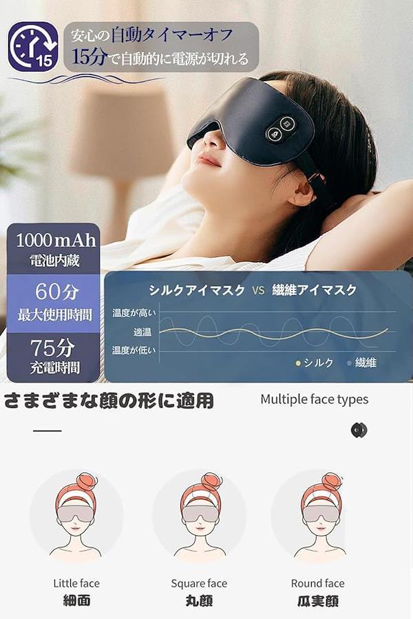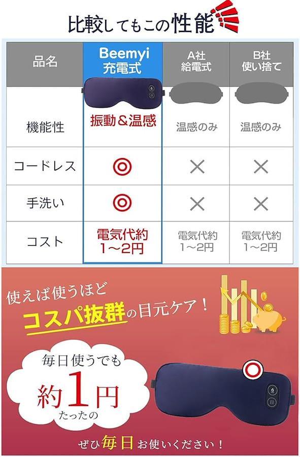 「便利で経済的なusb充電式 」Beemyiプレミアムアイマスクは、 便利なUSB-C充電式アイマスク。フル充電は約時間で完了。
