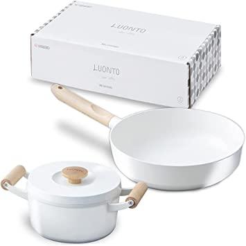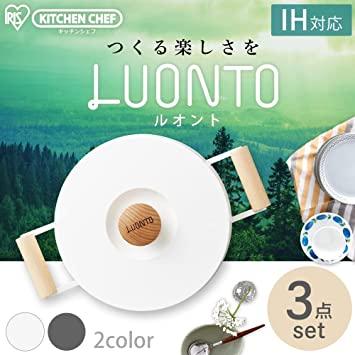 くらしに馴染む、北欧風で落ち着いたデザイン。フィンランド語で「自然」を意味する「LUONT(ルオント)」が誕生。そのまま食卓へ、収納時もインテリアの一部に、つい見える場所に置きたくなります。フライパンの取っ手には穴があるので、ぶら下げ収納も可能。取っ手、ふたのつまみには 天然木を使用。自然の風合いを生かし、心地よく手に馴染みます。商品カラーに合わせて天然木の色合いにもこだわりました。ホワイトにはナチュラルで明るい印象の天然木を使用、ダークグレイにはシックで落ち着いた印象の天然木を使用しています。【様々な料理に使ってほしいからフライパンは"深型"デザイン】フライパンは通常よりも深型にデザイン。食材もたっぷり入り、焼く、煮る、深さを生かした様々な料理がフライパンひとつで。【食材の水分で旨味を引き出すなべは"無加水鍋"仕様】なべのふた裏にある突起には旨味を引き出す秘密が。食材から出た水分を循環させるので水を加えない、人気の「無加水調理」が楽しめます。【お料理がくっつかないセラミックコーティング】耐摩耗性試験を70万回クリアしたセラミックコーティング加工。お料理はこびり付かず、洗い物もスムーズに。お手入れ簡単だから毎日使いたいお気に入りのアイテムに。セラミックコーティングは加熱により食材を内側から温める遠赤外線調理ができます。表面は焦がさずカリッと、中はふっくら、お料理にこだわる方も納得の仕上がりに。