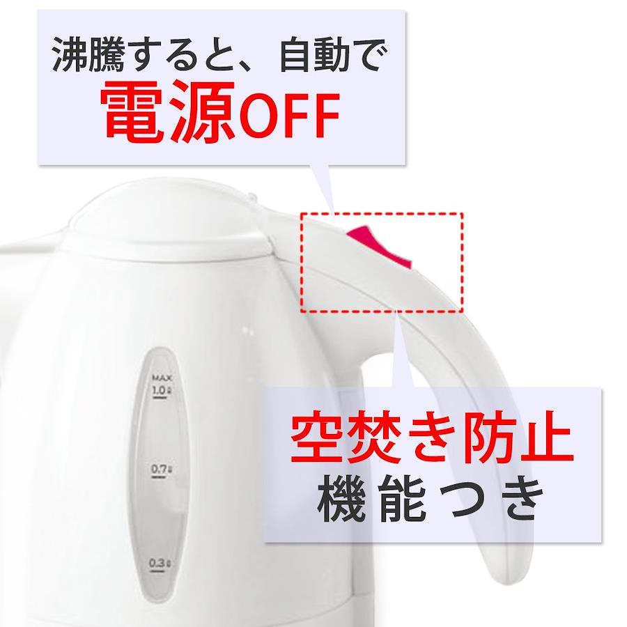 容器容量(約):1L 沸騰時間(約):9分(1Lあたり) コード長(約):1.1m(コードレス)