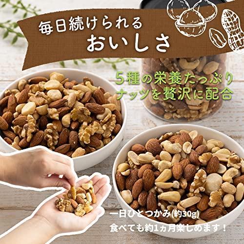 アーモンド(アメリカ)、ピーナッツ(中国)、クルミ(アメリカ)、カシューナッツ(ベトナム)、マカダミアナッツ(オーストラリア)、植物油脂、食塩