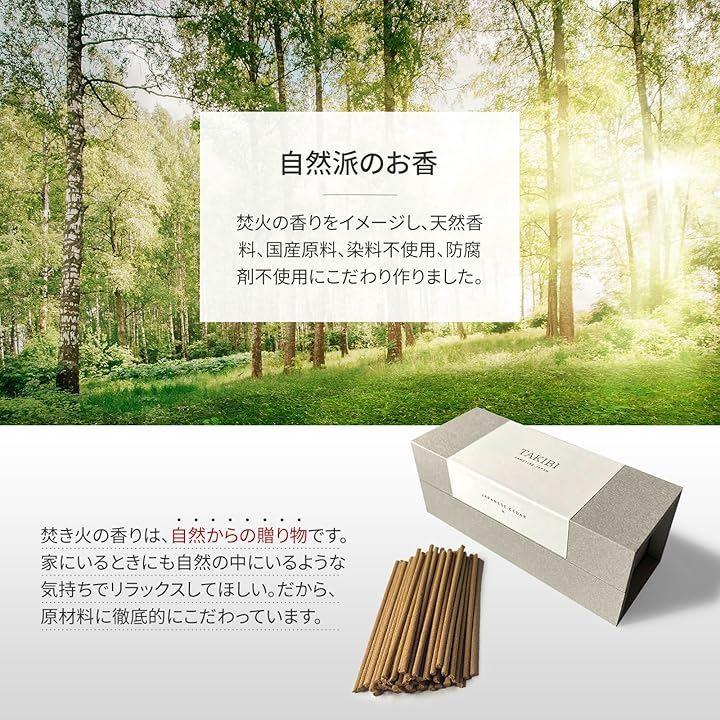 焚き火の香りを楽しめるお香「TAKIBI]には、以下のような魅力があります。