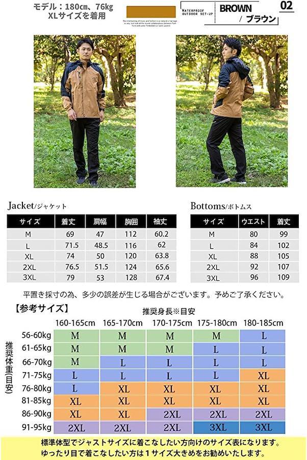 「利用シーン」登山、釣り、バイク、アウトドア、キャンプ、サイクリング、スポーツ、防災など 「機能」*ジャケット:撥水加工(耐水圧7,000mm)、防風、防寒 *速乾トレッキングパンツ:撥水加工(耐水圧2,000mm)、防風、速乾、伸縮 「カラー」ブラック、ブラウン、ブルー、ネイビー、グリーン、レッド 「重量」ジャケット約660g、パンツ約350g 「メイン素材」ポリエステル 「サイズ」M~3XL <ジャケット> 着丈 /肩幅/胸囲 /袖丈 [M] : 69 / 47 / 112 / 60.2 [L] : 71.5 / 48.5/ 116 / 62 [XL] :74 / 50 / 120 / 63.8 [2XL] :76.5 / 51.5 / 124 / 65.6 [3XL] :79 / 53 / 128 / 67.4 <パンツ> ウエスト /着丈 [M] : 80 / 99 [L] : 84 / 102 [XL] :88 / 105 [2XL] :92 / 107 [3XL] :96 / 109