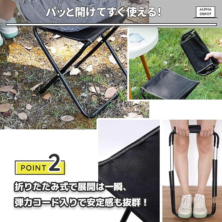 アウトドアチェア 折りたたみ式 軽量コンパクト設計 持ち運び簡単 収納袋付き 耐久性高いオックスフォード生地使用 キャンプや釣り・登山・花火大会などに最適な携帯チェア