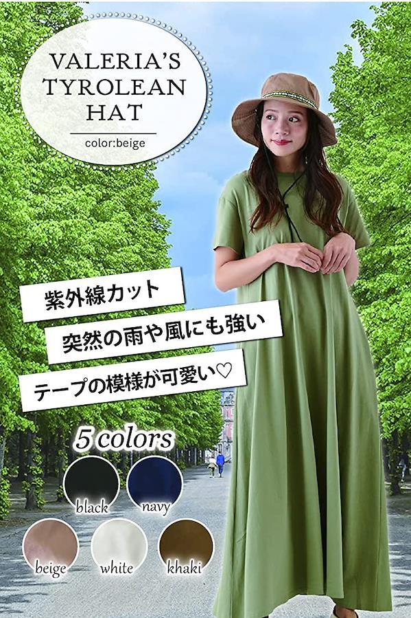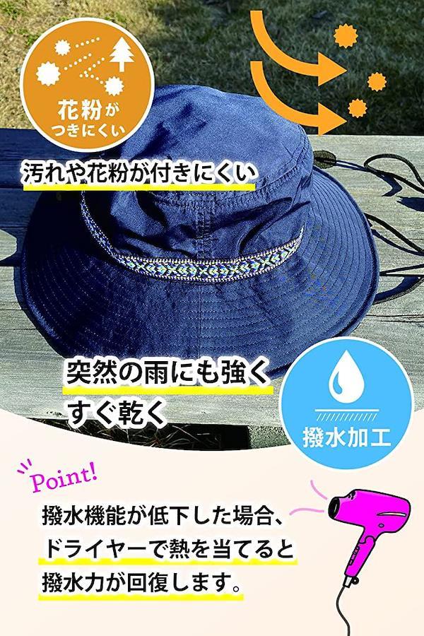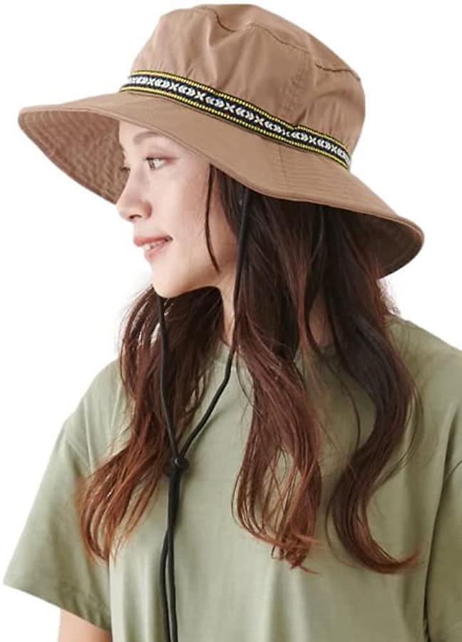・*UVカット、撥水加工、あご紐つき、サイズ調整可能、機能が盛りだくさんのアウトドアハットです(^^)かわいいチロリアンテープがワンポイントアクセント。