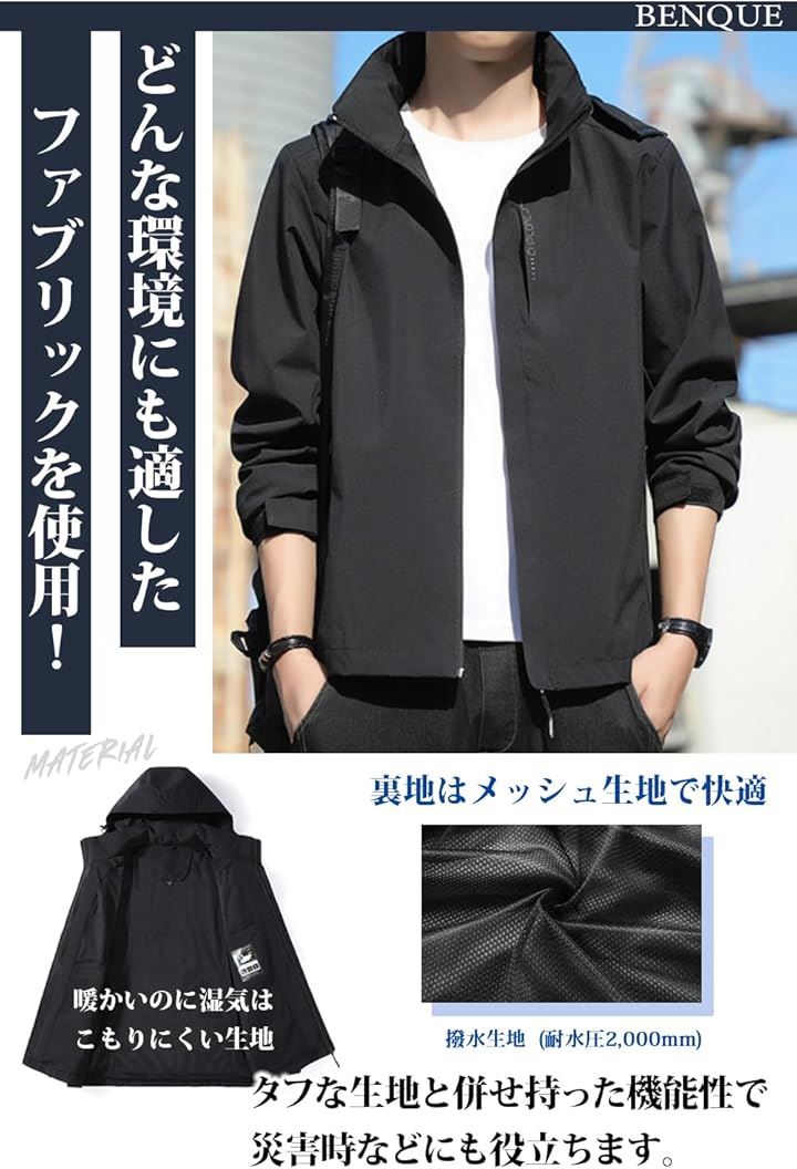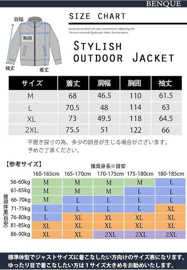 *素材:ポリエステル100% *カラー:ブラック、ネイビー、ブルー *サイズ:M,L,XL,2XL 「ジャケット」 着丈 /肩幅/胸囲 /袖丈 [M] : 68 / 46.5 / 110 / 61.5 [L] : 70.5 / 48/ 114 / 63 [XL] :73 / 49.5 / 118 / 64.5 [2XL] :75.5 / 51 / 122 / 66