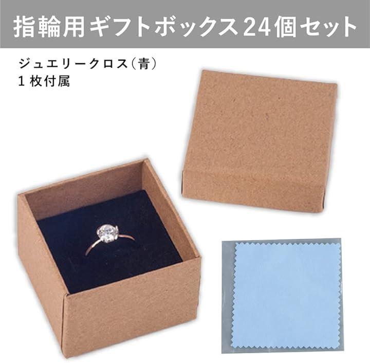 アウプル 指輪 ギフト ボックス 正方形 5x5x3cm 24個セット クリーニングクロス 1枚付き リング アクセサリー ジュエリー 収納 ラッピング 箱 無地 クラフト紙 茶