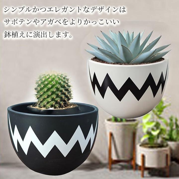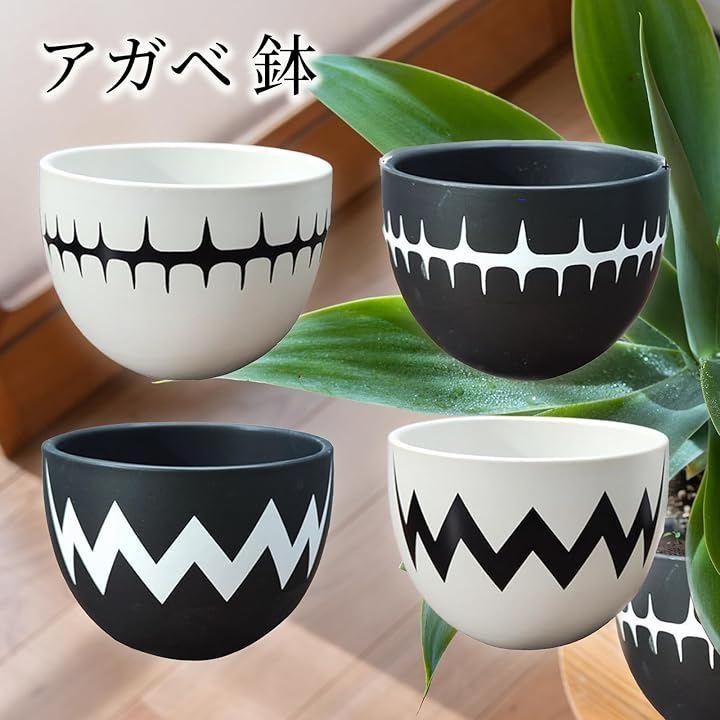 アガベ 鉢 陶磁鉢 塊根 陶器 4号 植木鉢 盆栽鉢 陶器鉢 塊茎植木鉢 モノクロ 丸型