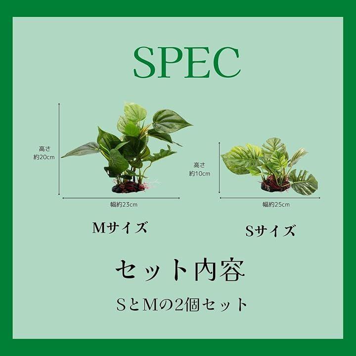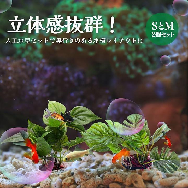 人工水草の遠近感を演出しやすいSとMのセット:SとMの2サイズセットで、前後に配置することで水槽に奥行きと立体感を持たせたレイアウトが楽しめます。