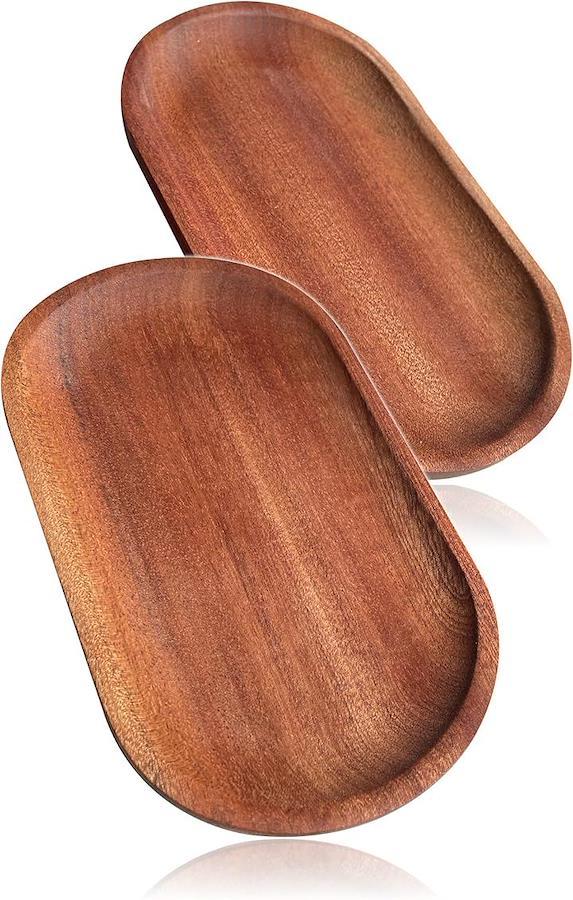 「柔らかい自然の手触り」自然な風合いの木製アクセサリートレイ2枚セット。