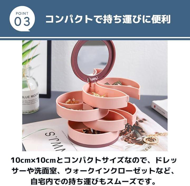 「回転式アクセサリーボックス」360度回転する、鏡付きのアクセサリー収納ボックス。