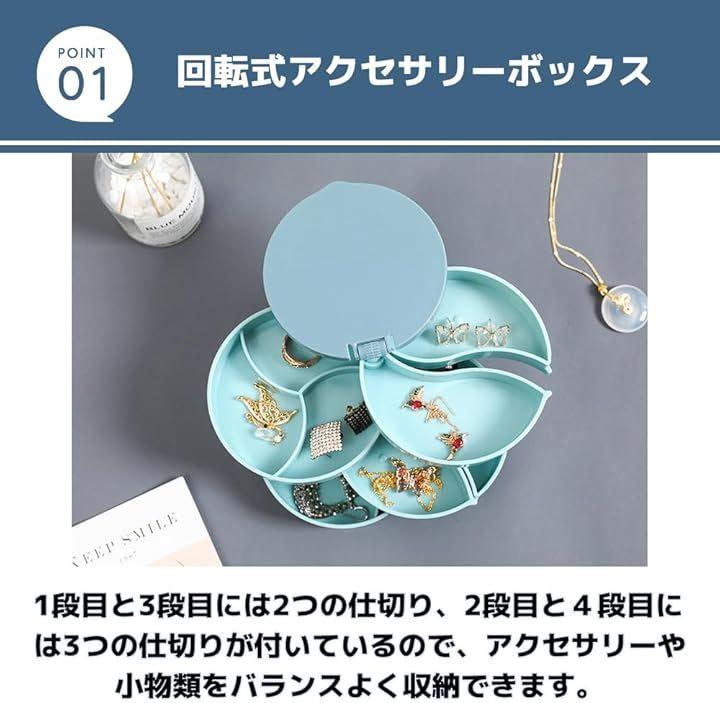 「回転式アクセサリーボックス」360度回転する、鏡付きのアクセサリー収納ボックス。