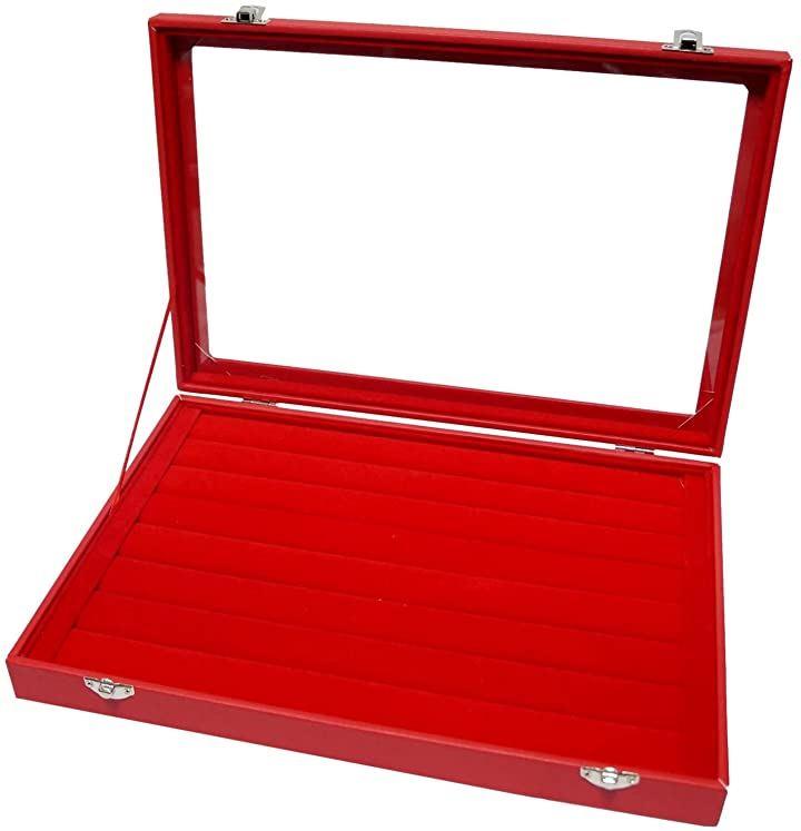 外から見えない箱に収納してしまうと、使いたい時に見つからない事がありますが、こちらのケースの蓋にはガラス窓が付いているので、蓋を閉めても中身がわかるようになっており綺麗に飾ればインテリアとしても映えます。