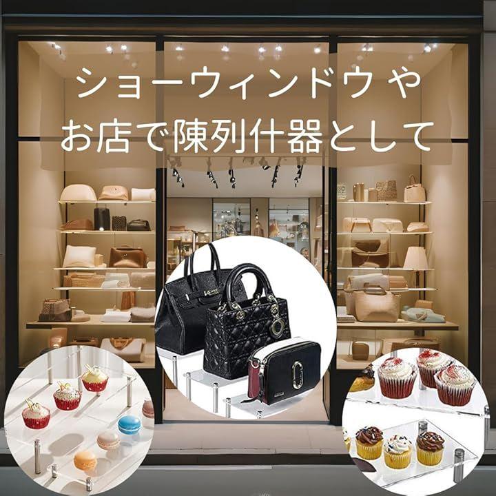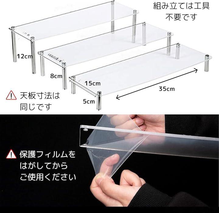 サイズ 横幅:約35cm、高さ:約12cm/8cm/5cm、ステージ奥行き:約15cm、板厚4mm [ご注意] 両面に保護フィルムを貼っておりますので、使用時にはがしてください