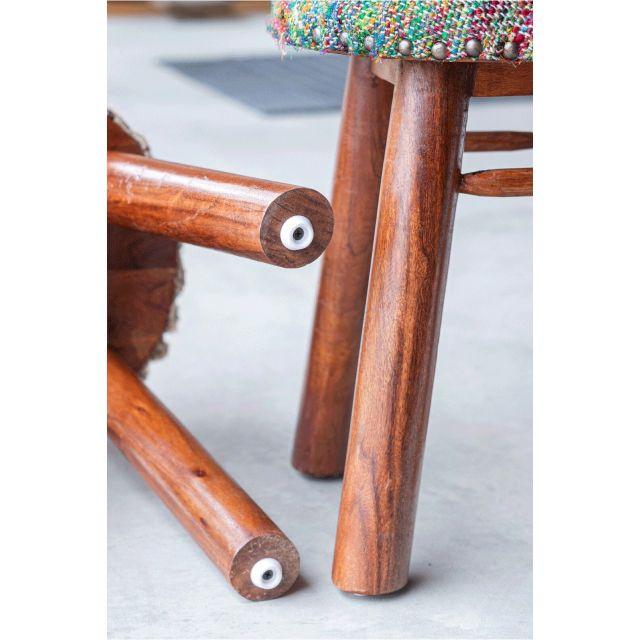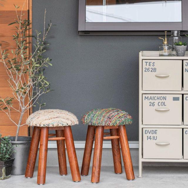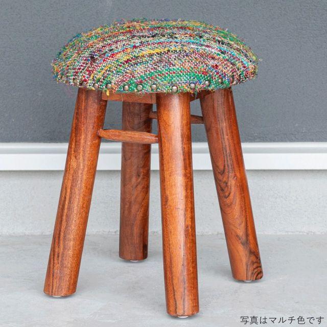 人気シリーズienowaの新商品♪マンゴー材を使用した風合いある木脚とインパクトのある生地感が可愛いスツールです。生地は落ち着いた雰囲気を醸し出すベージュ色(BE)と個性あふれるマルチ色の2色展開です!腰掛けとしての用途だけでなく、インテリア性の高い可愛らしいスツールをお探しの方へ。肌ざわりの良いシルク&コットンの生地を使用し、座面の周囲に打たれた鋲がさりげないアクセントとなっています。もちろんスツールとして普段使い頂けますが、可愛いデザインとカラーリングは、部屋のインテリアとしてもお楽しみ頂けます。