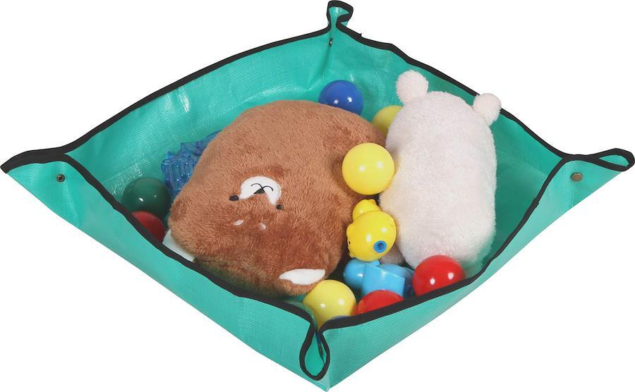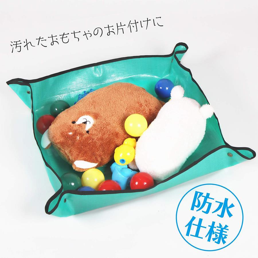 【特長】●散らかりがちなお子さまのおもちゃなどを片付けやすい、お片付けプレイマット。●パズルブロック、ミニカー、積み木など失くしがちなおもちゃを入れるのにピッタリ。●四隅のスナップボタンを留めることでトレイ状になり、移動の際などのおもちゃの落下を防止。●防水塗装により水を通さないのでベランダや公園などの屋外でも使用でき、お手入れもラクラク。●使わないときはコンパクトになり持ち運びもカンタン。DIY作業時やレジャー用としてもオススメ。