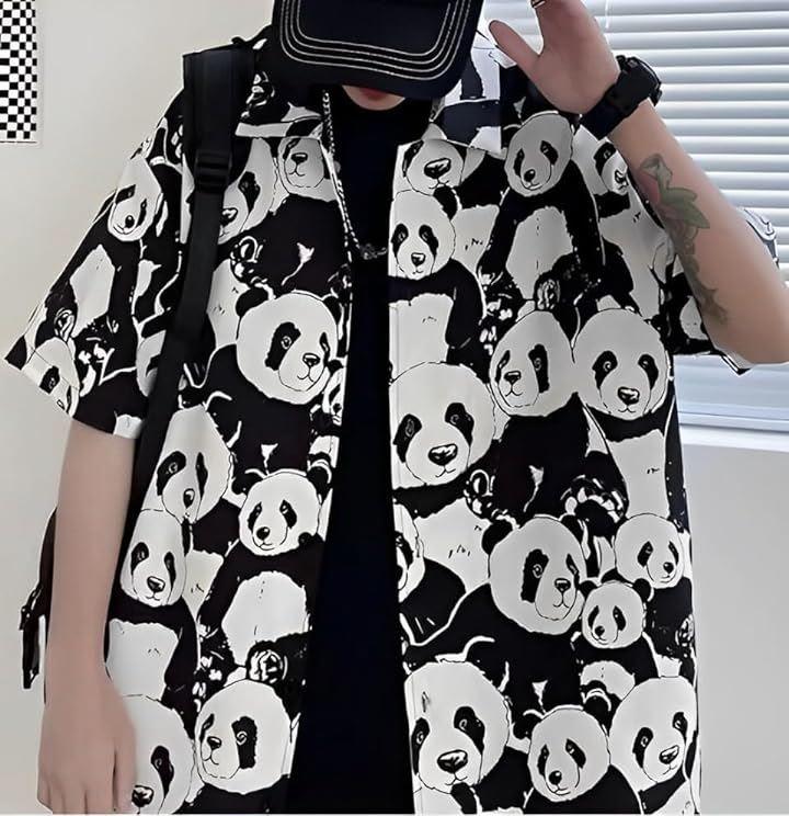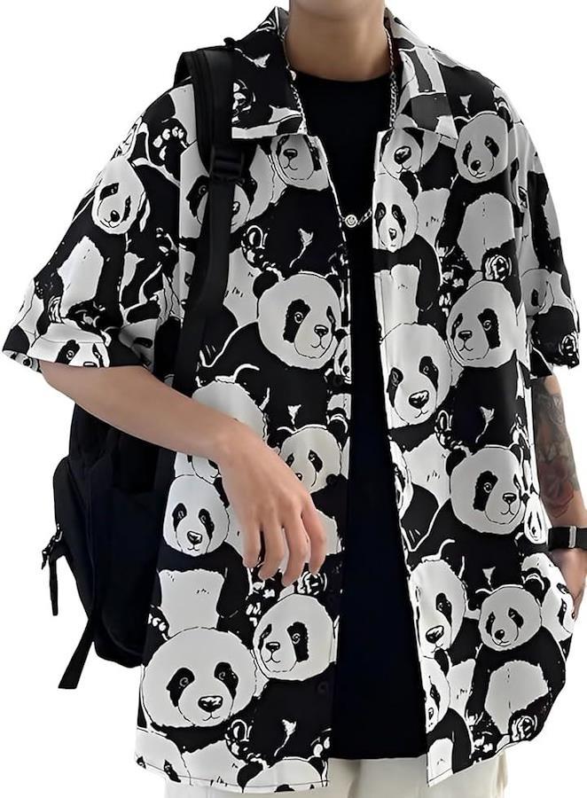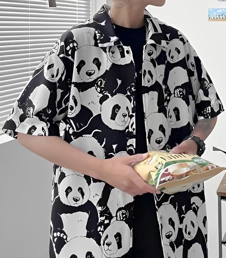 *遊び心満載のパンダ柄半袖シャツ。