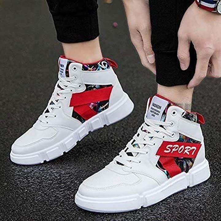 *足首までしっかりフィットするハイカットスニーカー*つま先はベーシックデザインで色々なボトムスに合わせやすい一足に*軽くて歩きやすいオールシーズンで履ける定番ハイカットスニーカー