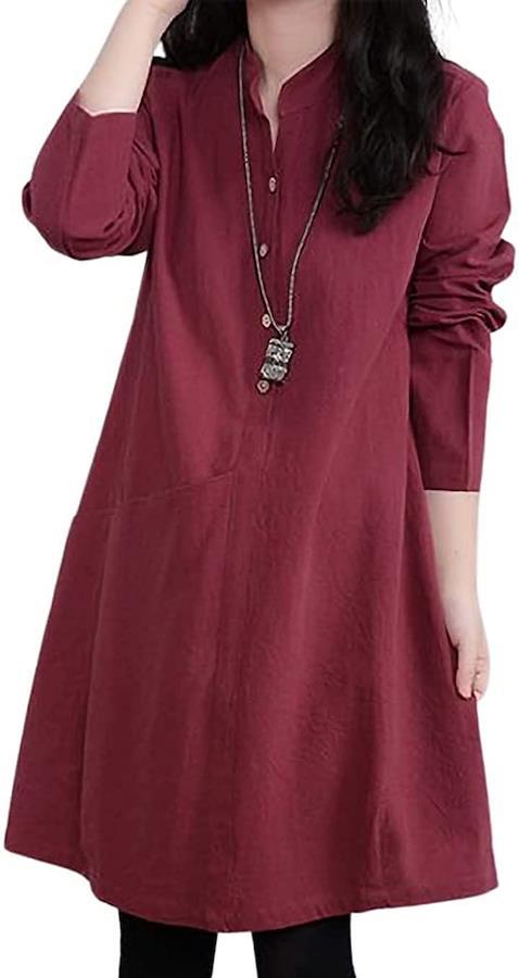 アスペルシオ レディース シンプル 膝丈 スキッパー ワンピース aライン 長袖 チュニック シャツ きれいめ ゆったり かわいい 可愛い おでかけ 大きめ 大きい サイズ ひざ丈 おしゃれ 体型カバー 襟付き カジュアル