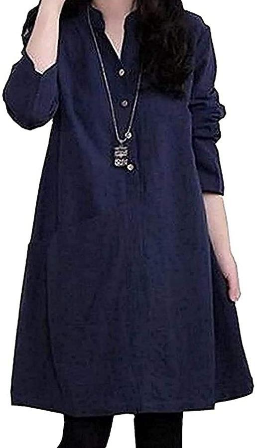 [アスペルシオ]長袖膝丈スキッパーワンピースaラインチュニックシャツレディース*清涼感のあるミニ丈シャツワンピース*