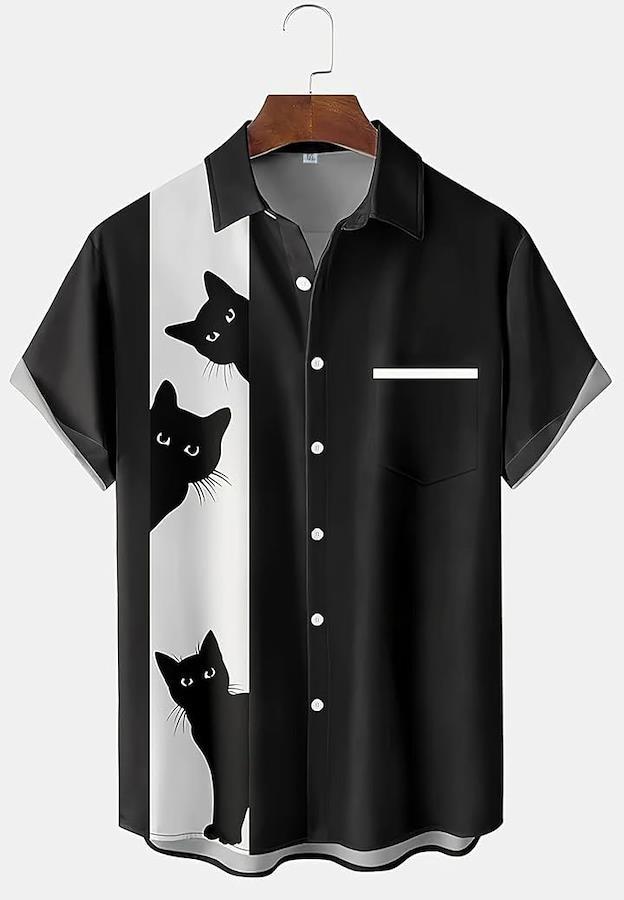 黒ねこ柄がひょっこりのぞくキュートでポップなデザインシャツ。
