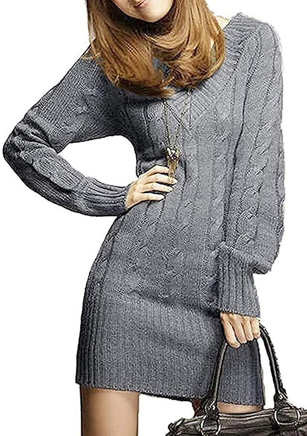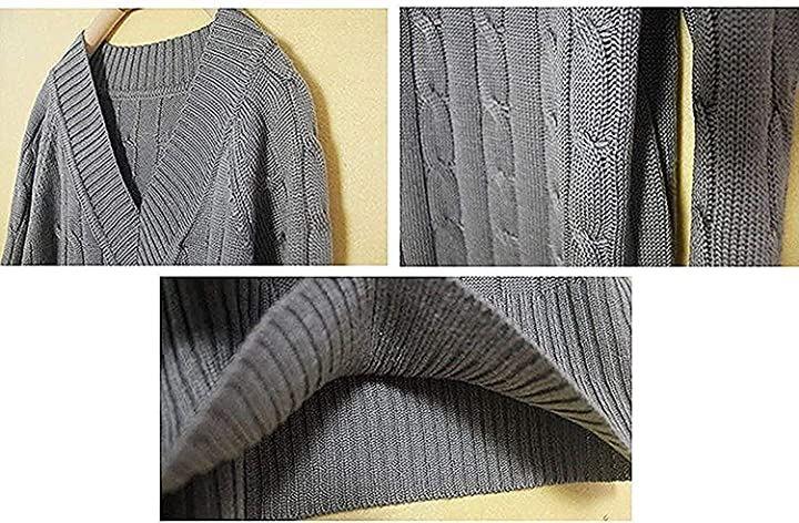 ・・存在感たっぷりなケーブル編みニットワンピース・・深めのVネックでスッキリとしたセクシーデザイン・・Iラインシルエットで、スタイルUP効果も・・