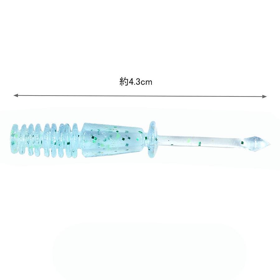水に溶け込むような薄いブルーに、ブルーラメ×緑ドットグローをプラス!警戒心がある魚に自然体でアプローチするカラー。