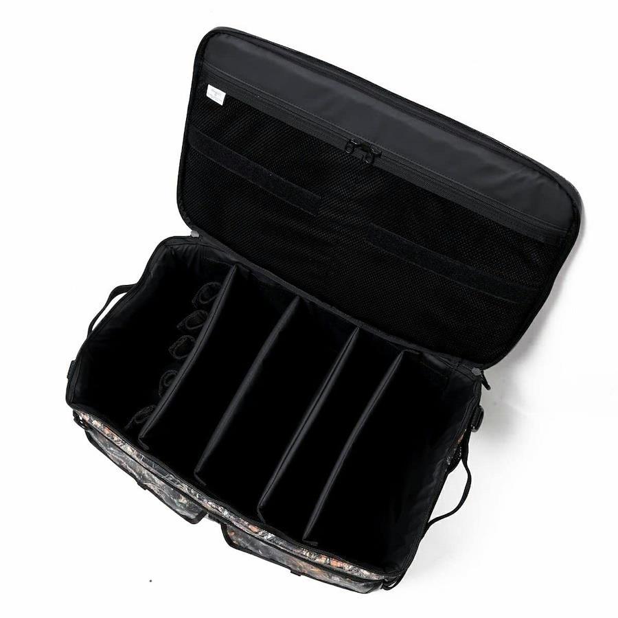 【素材】ポリエステル、ポリカーボネート【本体】幅 約 480×高さ 約 300(mm) 【ショルダーストラップ】長さ 約 740~1300×幅 約 37(mm) ※サイズは当店計測サイズとなります。商品により、若干の個体差が生じます。【重さ】約 3.06kg【外側】ジップポケット(L)×1[内蔵: ポケット(XS)×2、ポケット(XXS)×4]、ベルクロポケット(M)×2、メッシュポケット(M)×1、メッシュポケット(S)×2 【内側】メッシュジップポケット(M)×2【付属品】ショルダーストラップ×1、底板×1、仕切り×3、仕切り×1[ ベルクロベルト×5]