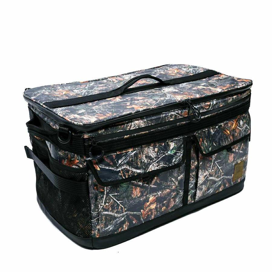 アッソブのキャンプカテゴリーの中でも人気のコンテナボックス。特に注目されているサイズにカモフラージュ柄が加わりました。 Lサイズは、コンロなどの調理器具も収納可能な、特大サイズです。2~3人でのキャンプで使う調理器具は一式入ります。 内装にはウレタンがボンディングされた仕切りつき。マジックテープで取り外し可能な為、中に入れるものに合わせて仕切りの幅を調節することが可能です。 リアルツリーカモは、ハンティングウェア用として開発したものが始まりで、写実的で絵画的な美しさを備え、より自然に溶け込み、自然と一体となるようなリアルなカモフラージュが表現されたものです。 UNBY本社のある三田市の市木である「赤松」をMIXさせ、オリジナルのリアルツリーカモを創作しました。 AS2OVアウトドアアイテムで人気のある305Dポリエステルにオリジナルリアルツリーカモをプリントし、ポリカーボネートのコーティング加工 したオリジナルファブリックです。