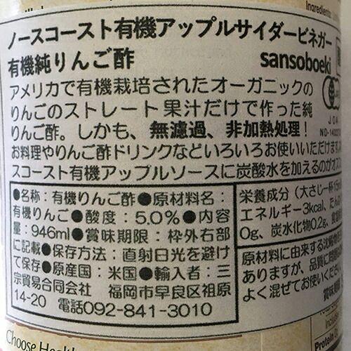 ■商品名:アップルサイダービネガーオーガニックノースコースト有機アップルサイダービネガー946mlりんご酢低温圧搾無濾過非加熱