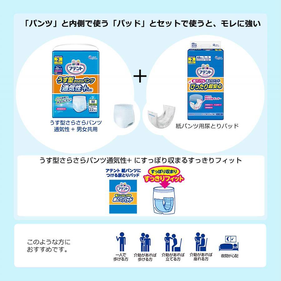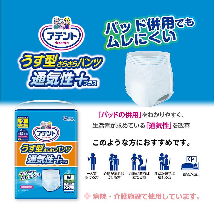 アテントうす型さらさらパンツ通気性プラスM男女共用22枚 容量22枚 大王製紙 大人用オムツ