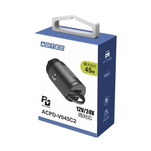 通常1-5営業日で発送:超小型最大45W出力対応カーチャージャー。シガーソケットに装着すれば出っ張ることなくソケットに装着出来ます。蓋つきのサービスコンセントなどの使用やインテリアを気にされる方に最適。 Type-CポートとType-Aポートのマルチポート仕様。 単独で使用した場合、タブレットやiPhoneの高速充電に対応。また、小型なのに45Wの高出力対応のため、多くのエントリーノートパソコンも充電出来るパワフルな製品となります。 一般車の12Vだけでなく、外国車やトラック、バスなどで採用されている24Vにも対応。
