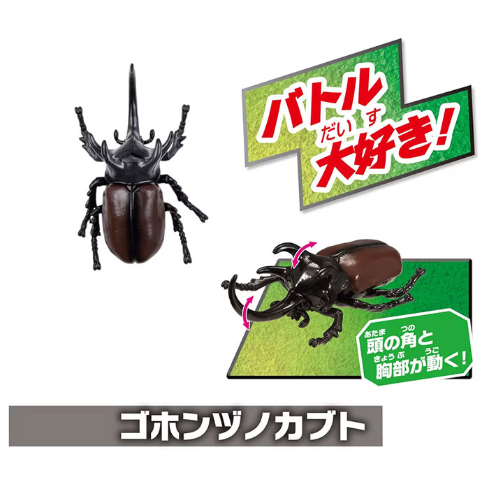 ゴホンヅノカブトは、頭の角、胸部が動きます。