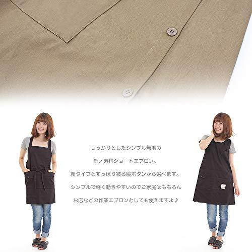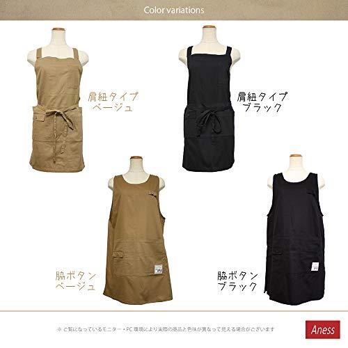 メイン素材: 綿シンプルタイプのしっかりとしたチノ素材のミニ丈カフェエプロン紐タイプとすっぽり被る脇ボタンから選べます。シンプルで軽く動きやすいのでご家庭はもちろんお店などの作業エプロンとしても使えますよカラー:ベージュ ブラックサイズ:◆肩紐タイプ 身丈 約83cm 身幅 約52cm 裾幅 約89cm ◆脇ボタンタイプ 身丈 約85cm 身幅 約51cm 裾幅 約64cm・素材:綿100% ・登録商標 Aness (第5751647号)