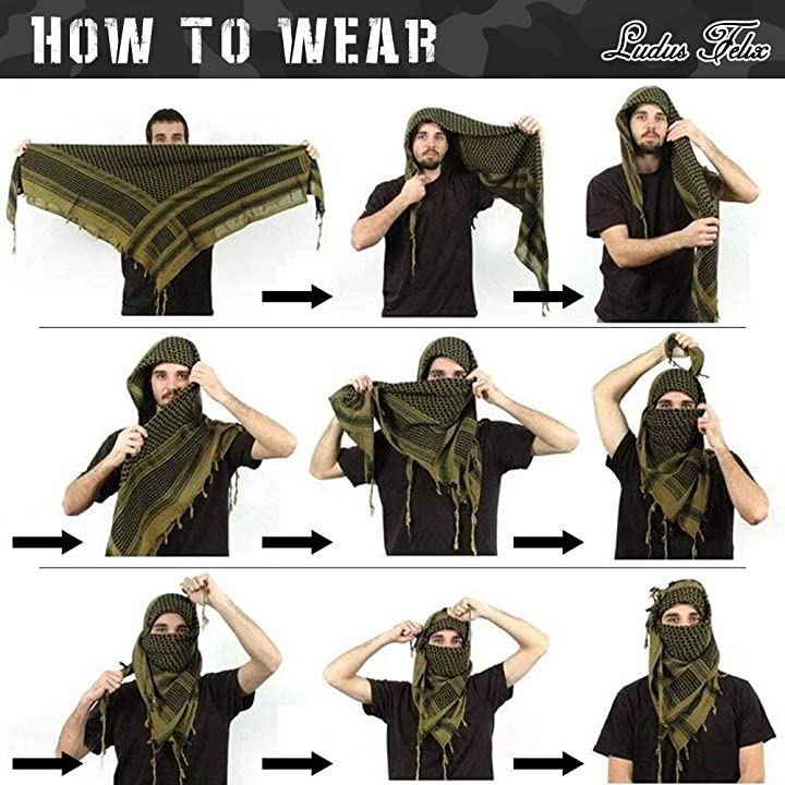 ・v「 アレンジ&使用用途 」サバゲー/サバイバルゲームで、目の部分だけ出して巻くシュマグ巻きにすれば、フェイスマスク代わりになります。